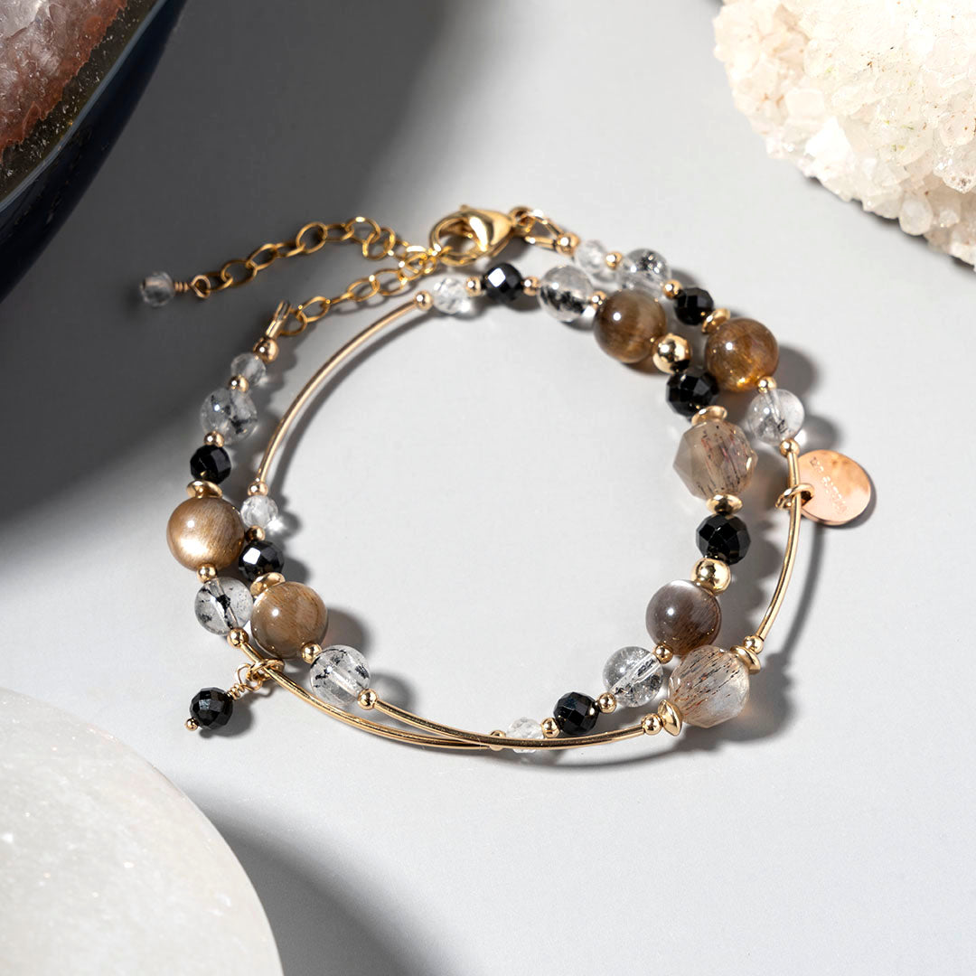 黑太陽石(Black Sunstone)又稱為黑骨幹,以其深邃的黑色底色隱約閃爍著金色光澤而聞名。黑太陽和其他黑色系的水晶一樣,擁有強大的辟邪功效,能有效抵禦負面能量、情緒和小人的干擾,同時幫助釋放自身的負能量和病氣。黑太陽石能提升體力與活力,增強能量場,並被認為能招來貴人和財運,讓我們在各方面獲得更多支持與機會。此外,黑太陽石特別適合那些犯太歲或經常出入醫院的人佩戴,為他們帶來更多的保護與能量。