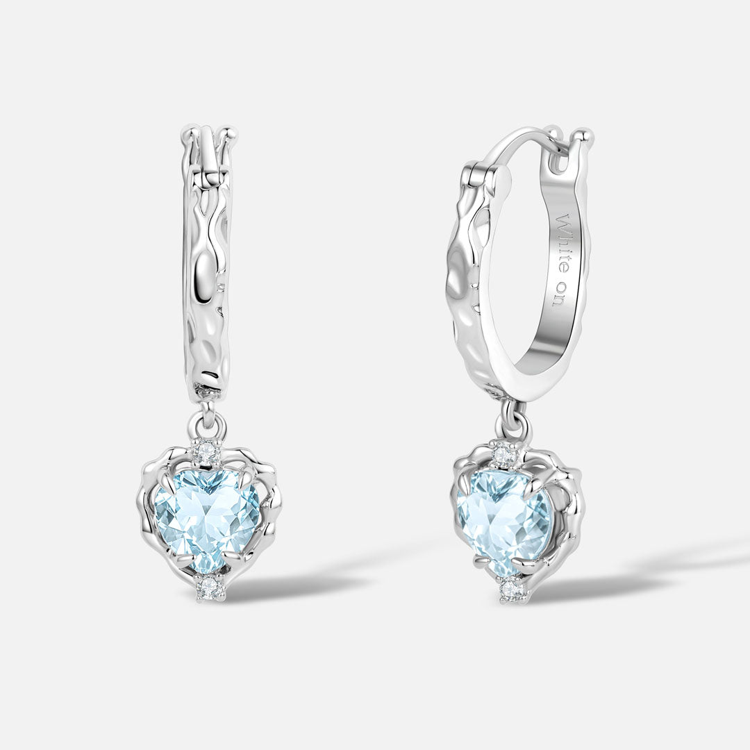 Wavy Heart 愛心藍托帕石925銀耳環圈