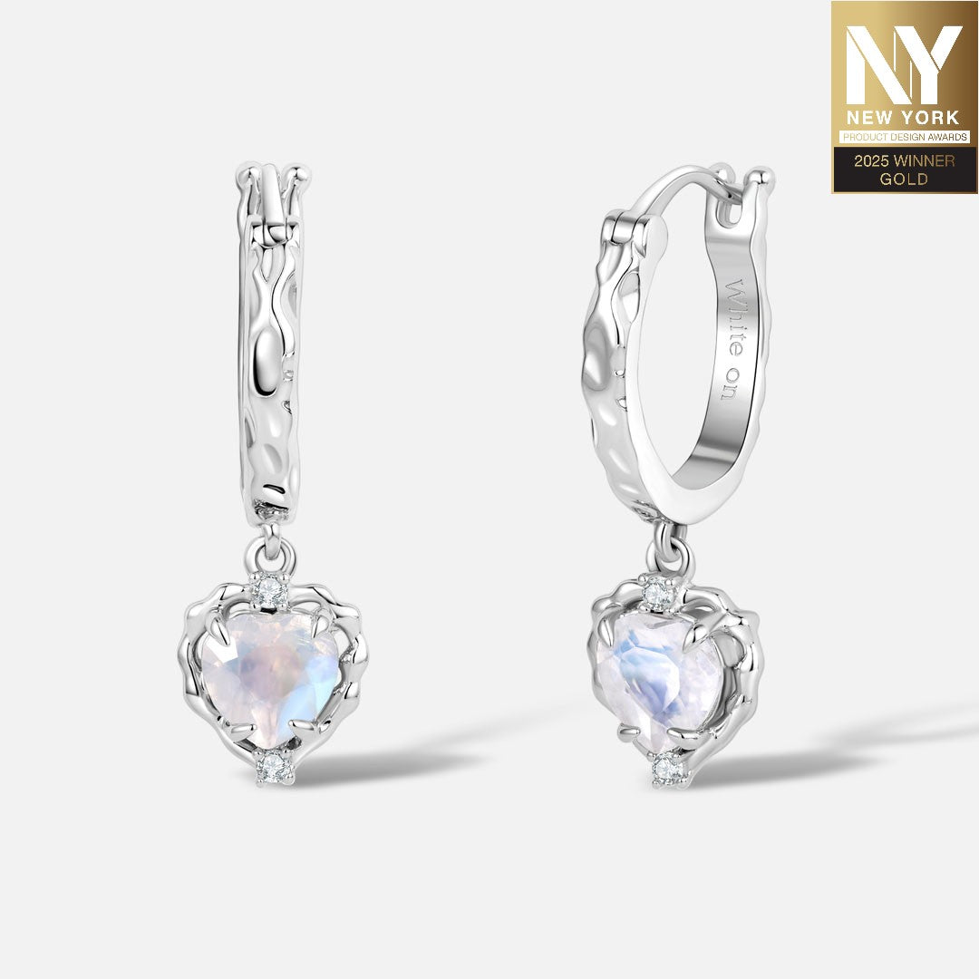 Wavy Heart 愛心月亮石925銀雙層項鏈