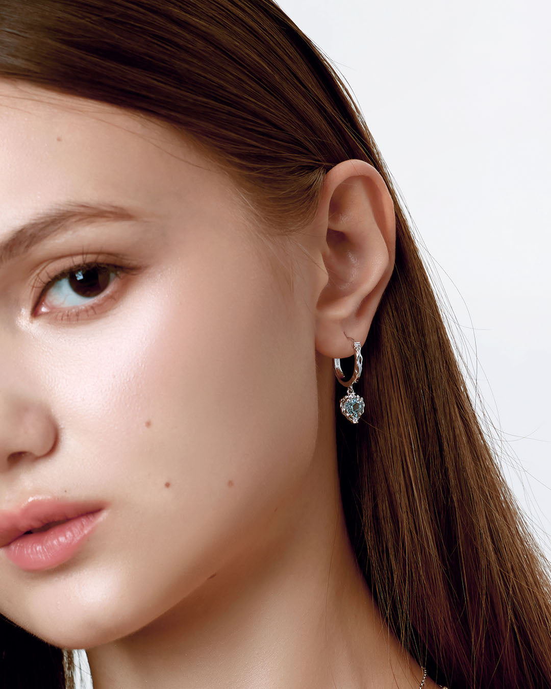 Make a bold statement with the Wavy Heart Hoop Earrings, where the unique wavy hoops and heart-shaped borders echo each other in a stunning blend of elegance and individuality. Sparkling zircons are set above and below, beautifully highlighting the heart-shaped Blue Topaz and adding extra dimension and brilliance to this semi-precious stone. Crafted from 925 sterling silver for lasting durability and a polished finish, these earrings are perfect for both everyday wear and special occasions, bringing a captivating touch to any ensemble.