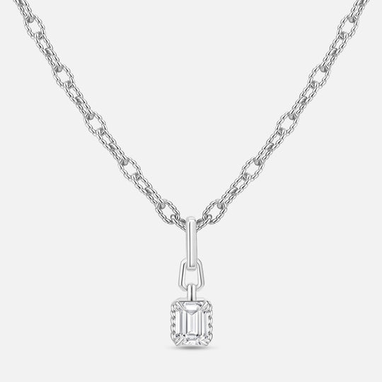 The KNIT Pendant features a delicately knit textured frame, paired with a distinctive trapezoid-shaped bail that seamlessly blends sleek industrial lines with refined elegance. At its center, an octagonal-cut semi-precious stone radiates natural color and unique character. Designed for versatility, this pendant can be purchased separately to pair with your favorite chain, or styled with our classic twisted necklace to suit any look. Whether worn solo or layered, it’s the perfect statement piece to highlight your individuality and elevate any ensemble.