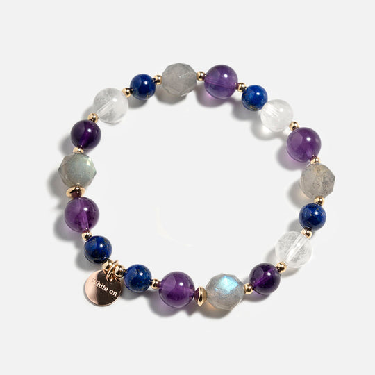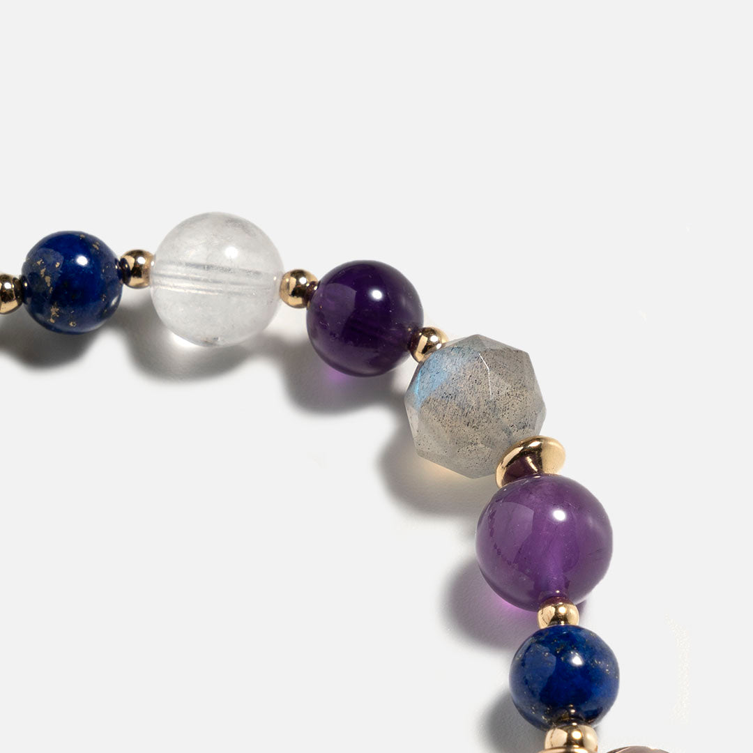 紫水晶拉長石白幽靈青金石14K包金手鏈