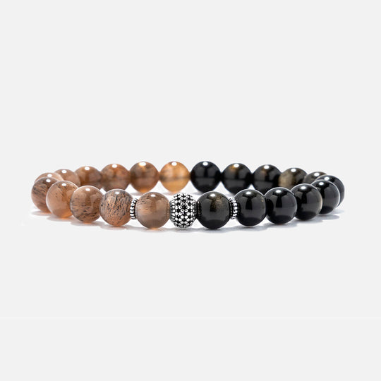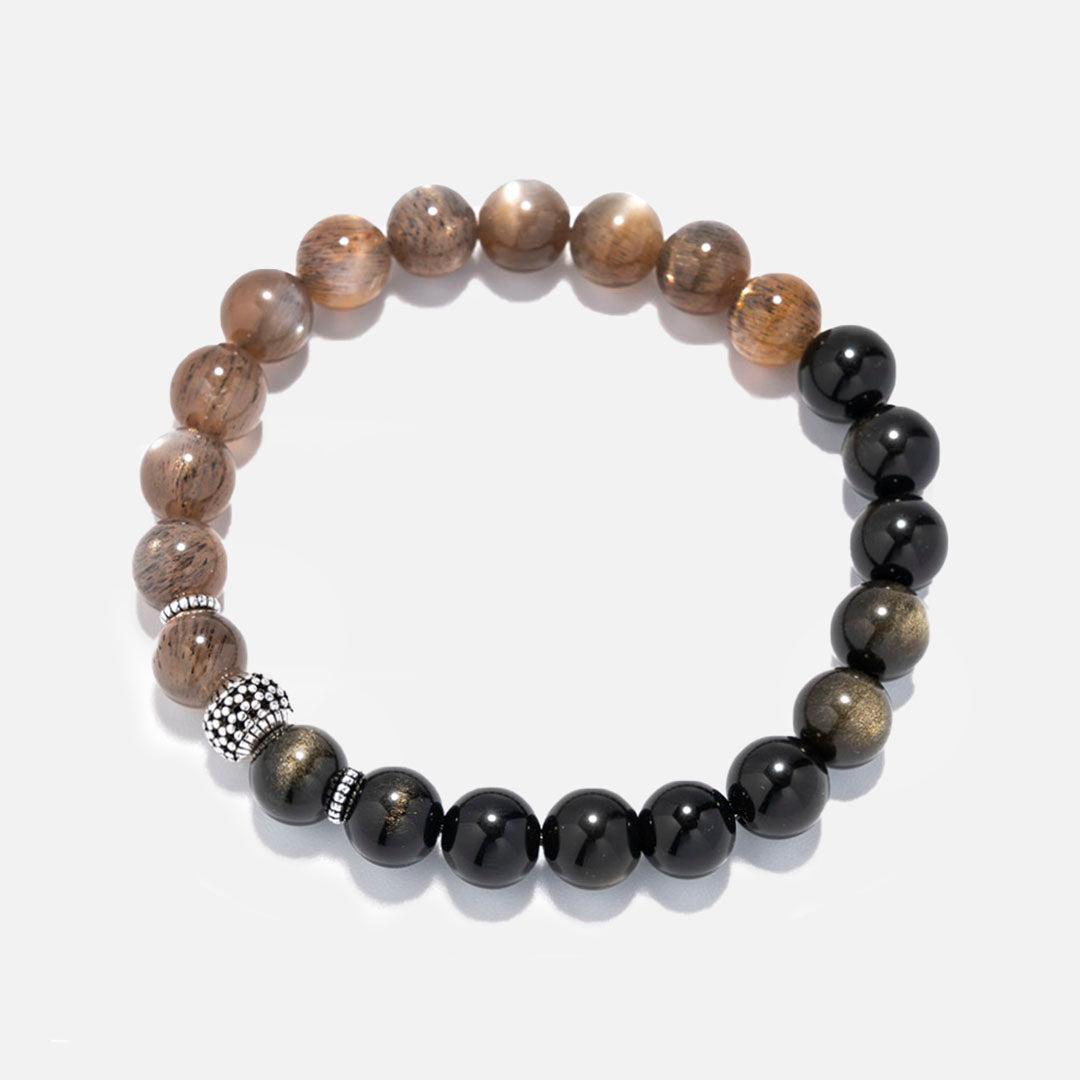 黑太陽石黑曜石925銀水晶手鏈