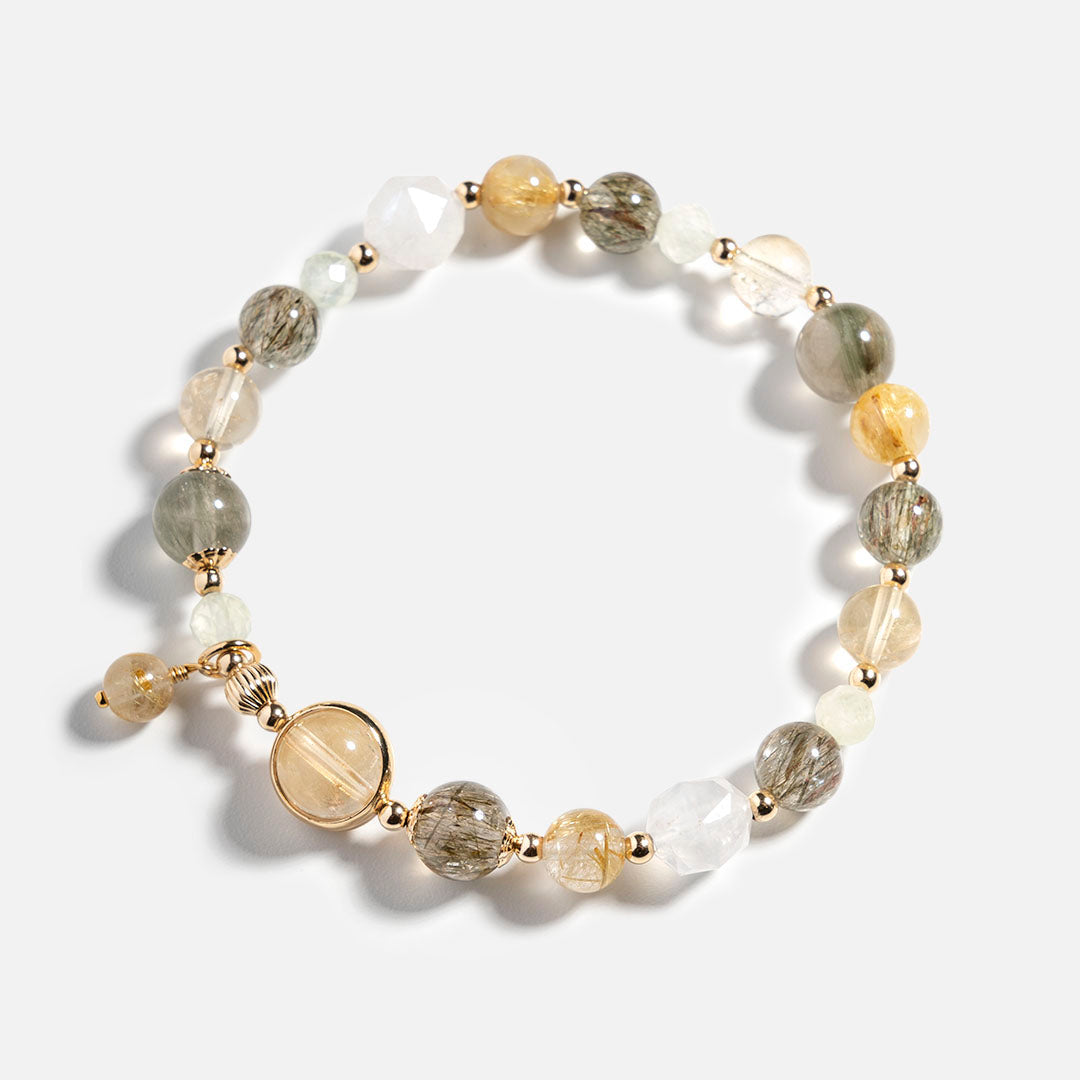 綠髮碧璽金鈦晶月光石14K包金雙圈水晶手鏈