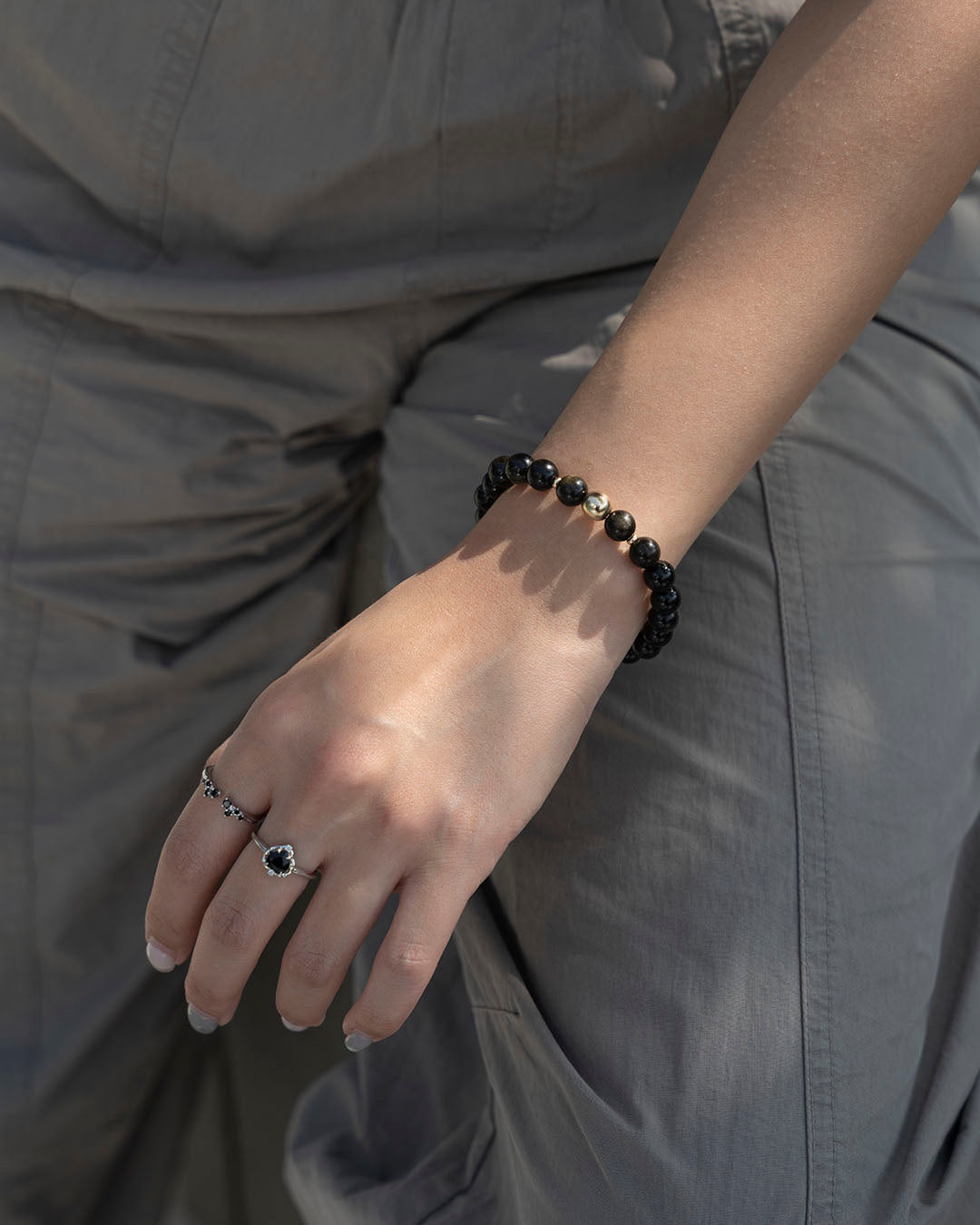 金沙黑曜石14k包金手鏈