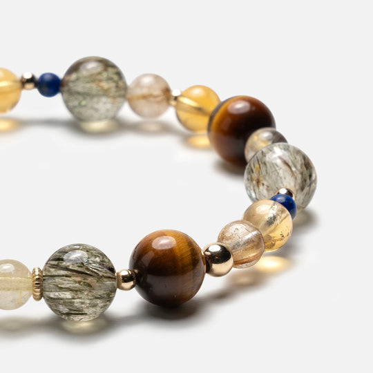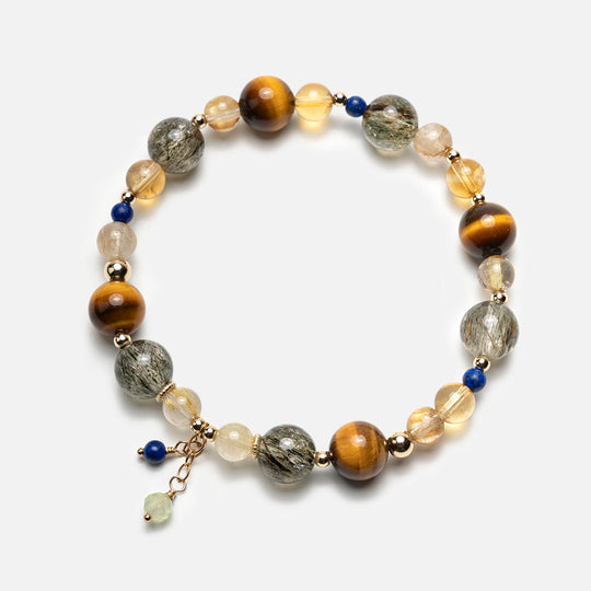 綠髮碧璽金髮晶虎眼石黃水晶14K包金手鏈