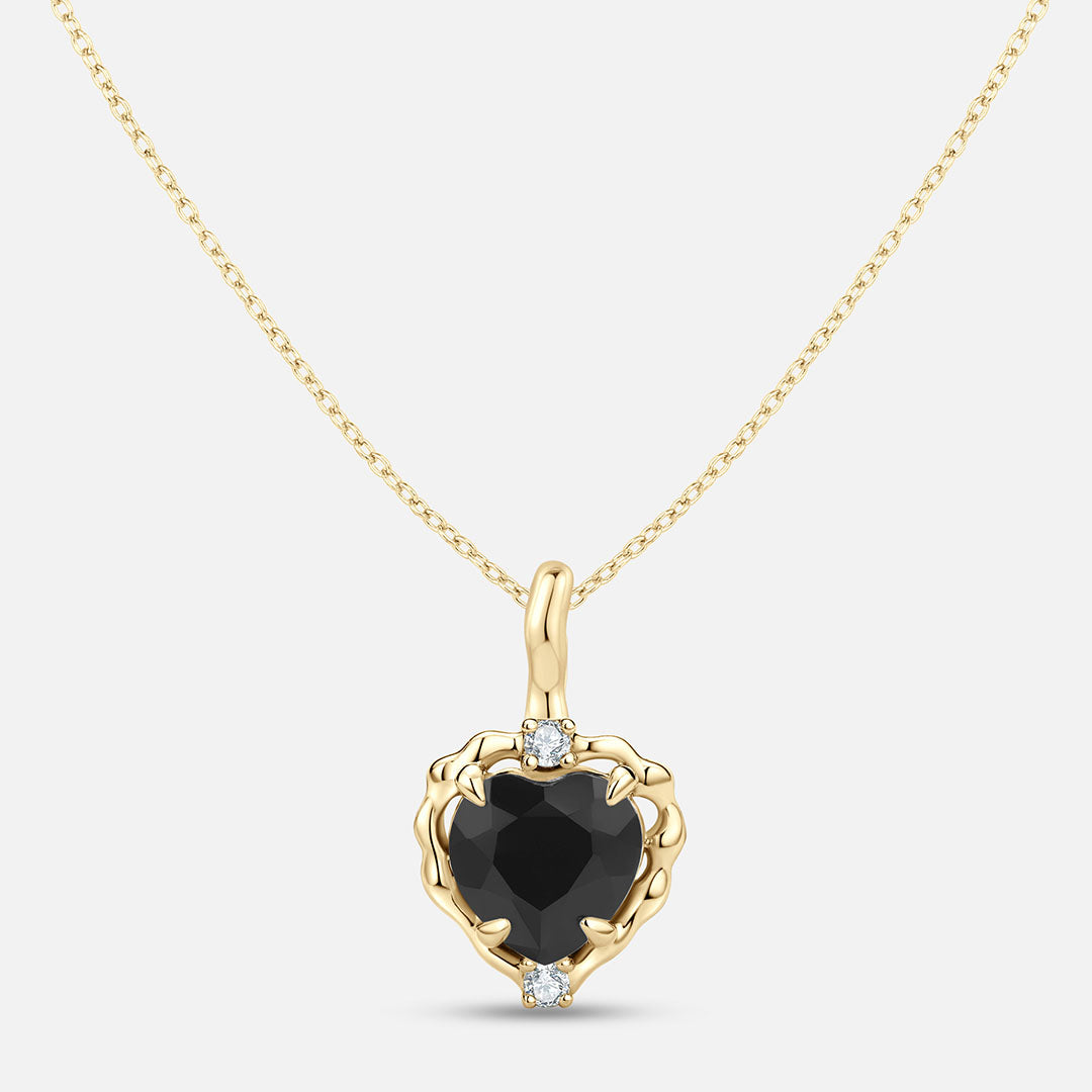 Wavy Heart 愛心黑曜石14K金吊墜