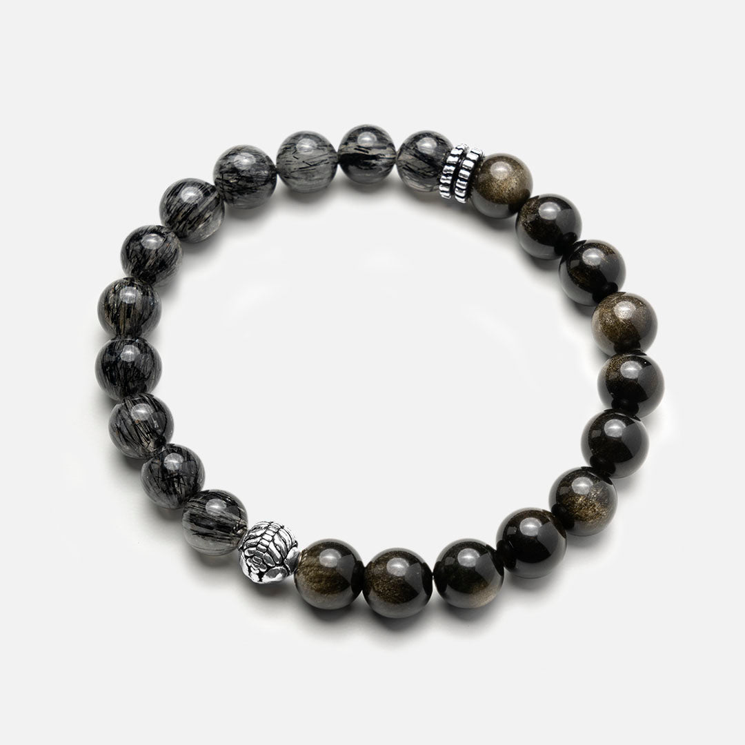 沙黑曜石是一種內含亮金色物質的黑曜石,被認為有抵禦、吸收負能量和護身的功效,能防小人及邪術,有極度辟邪化煞作用,可以避免負能量的干擾,有助吸收和消除壓力、濁氣等負能量。