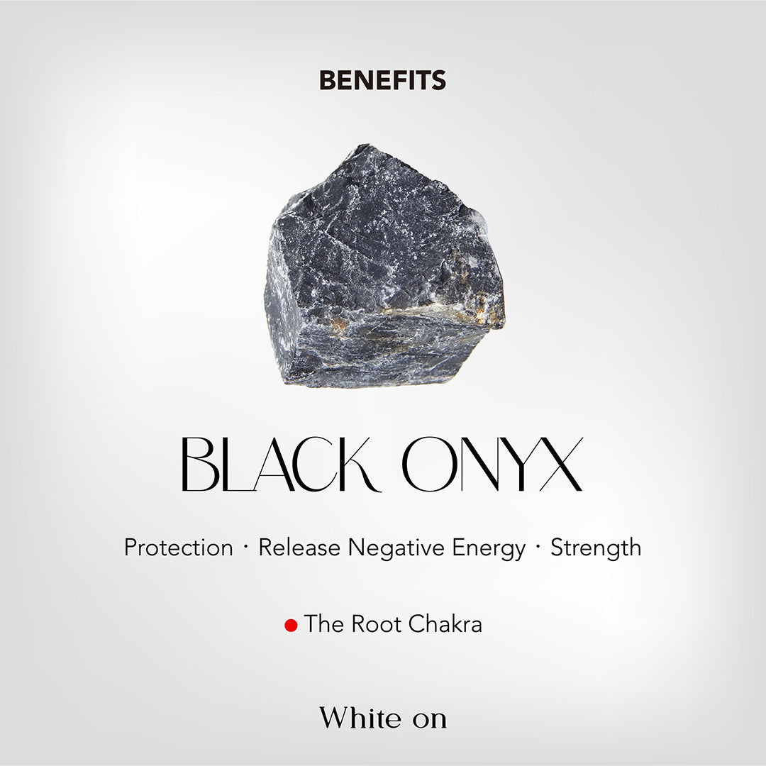 黑瑪瑙象徵著平安與堅毅,深邃光澤如夜空般靜謐,能穩定情緒、增添自信,還可以驅散負面能量,因此被稱為「守護者之石」。