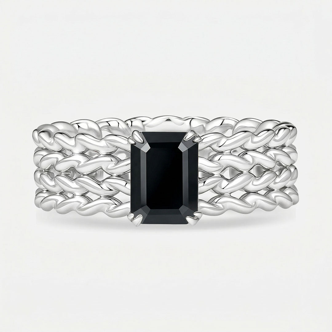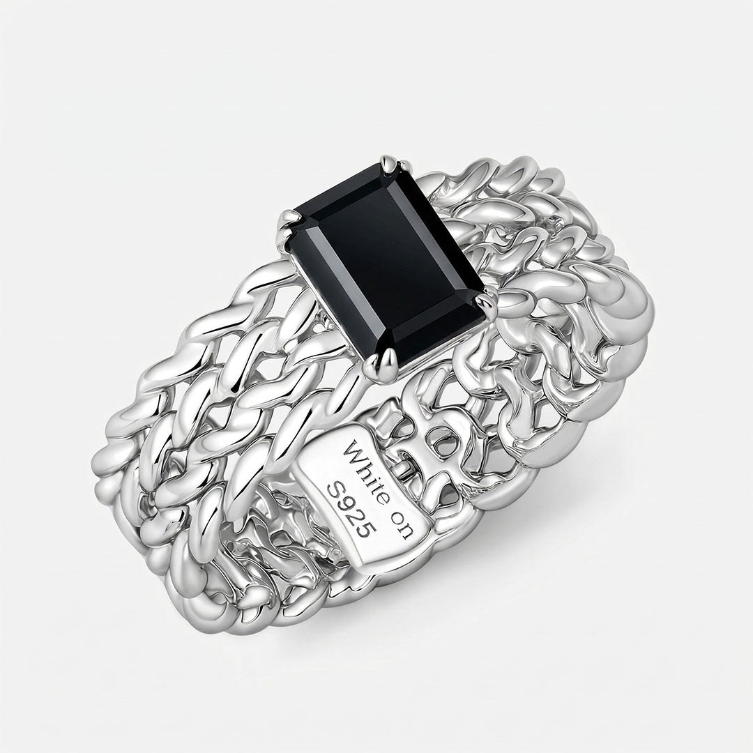 KNIT系列戒指以編織紋理結合俐落工業風設計,象徵時間與記憶的交織。選用925銀鍍白金材質,款式線條簡潔卻不失細膩。戒面鑲嵌小八角型半寶石,融合自然魅力與優雅時尚氣息。每枚戒指都是情感的象徵,為您的日常造型注入獨特個性與深刻意義。