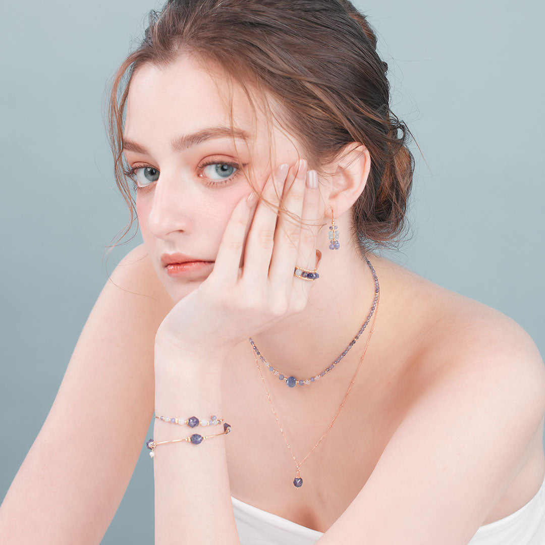 這款堇青石、坦桑石的項圈採用優質的堇青石和坦桑石,搭配14K包金頸圈項鍊,展現出優雅的氣質和高貴的品味。堇青石呈紫色,坦桑石則呈現出溫暖的粉藍色調,兩者交織出一種柔和而獨特的美感。此項圈是春季時尚配飾的不二之選,讓您在任何場合中都能閃耀光彩。