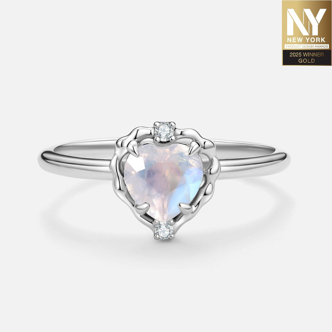 Turn heads with the Wavy Heart Ring, featuring a chic irregular wavy border and sparkling zircons that elegantly frame a heart‑shaped moonstone. Minimal yet refined, its slender band is effortlessly versatile—perfect for stacking with open rings or wearing solo for a subtle statement.