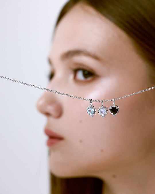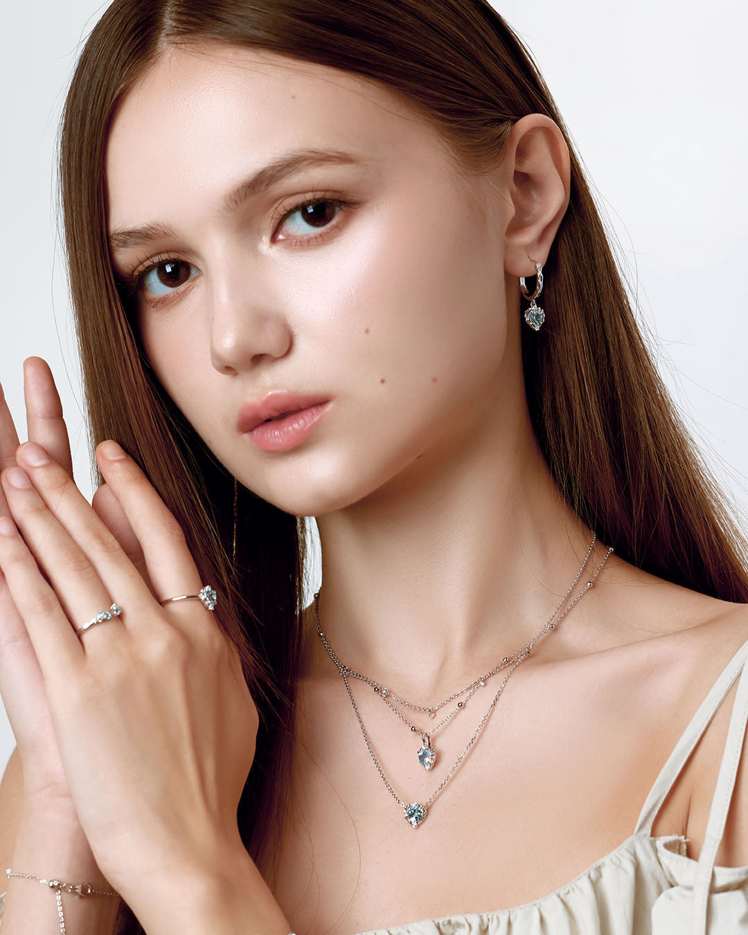 The unique design of the Wavy Heart pendant captures every eye. It features an irregular wavy frame, and the zircons inlaid above and below add more sparkle. It perfectly embellishes the heart-shaped blue topaz, highlighting the unique beauty of this semi-precious stone. The hollow details at the bottom of the pendant enhance the three-dimensional sense and add a touch of personality. Whether it is paired with daily clothing or special occasions, this pendant can add a charming highlight to your look, allowing you to exude confidence and charm at every moment.