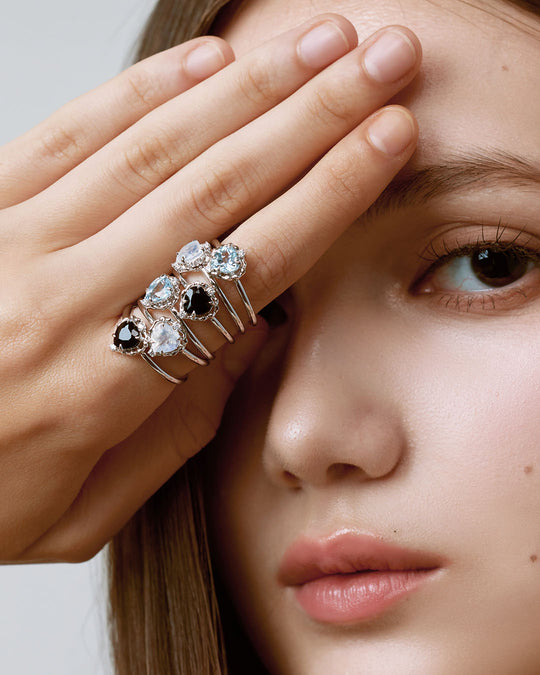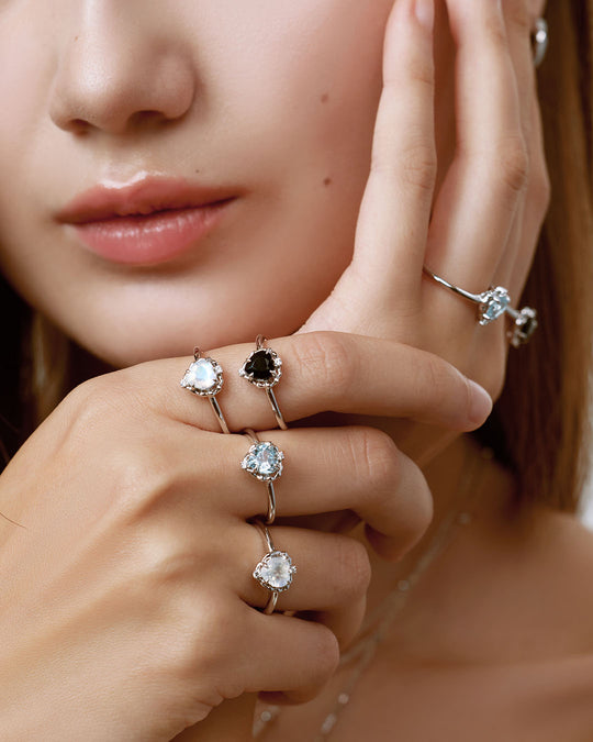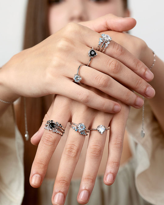 Turn heads with the Wavy Heart Ring, featuring a chic irregular wavy border and sparkling zircons that elegantly frame a heart‑shaped obsidian. Minimal yet refined, its slender band is effortlessly versatile—perfect for stacking with open rings or wearing solo for a subtle statement.