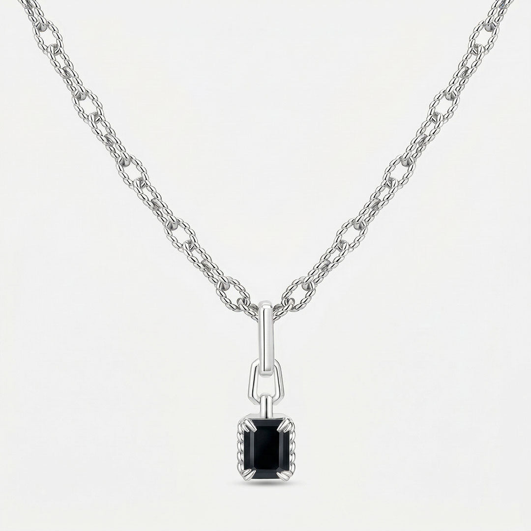 WHITE ON 織紋黑瑪瑙吊墜,細緻編織紋理搭配梯形環圈,中央鑲嵌小八角石,工業與優雅共存,可自由配搭你的項鍊。