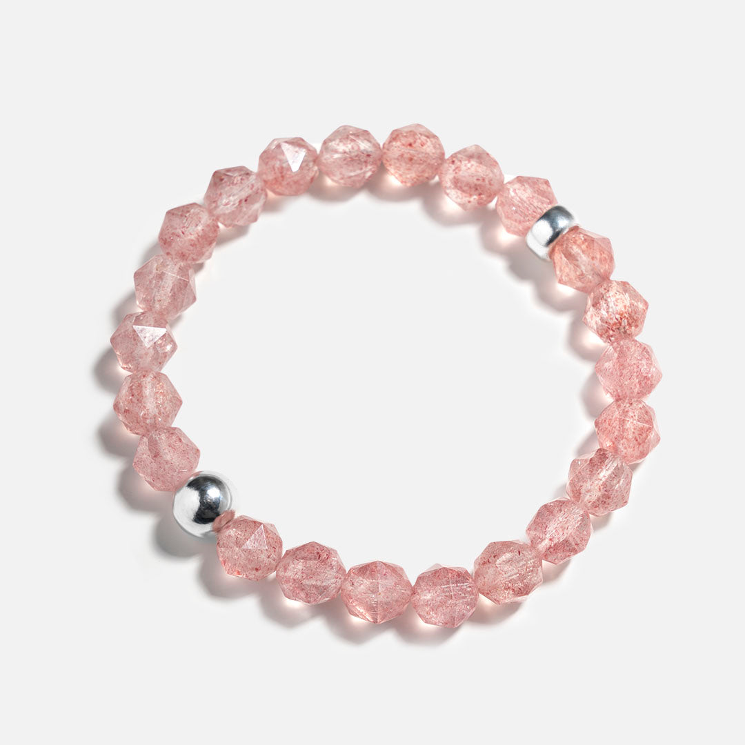 草莓晶(Strawberry Rose Quartz)主要功效是幫助愛情和人際關係;佩戴草莓晶讓心境感到樂觀平和,思考變得更清晰,從而增加個人魅力,吸引美好的愛情,並招來貴人的相助,從而提升人緣運及招來美好的姻緣。草莓晶與紅紋石功效是偏向積極主動,能夠增加正面、樂觀思維,幫助生活中提升樂觀感。草莓晶建議佩戴左手會比較適合。