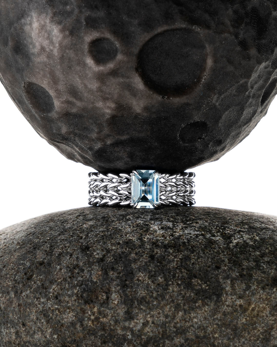 KNIT系列戒指以編織紋理結合俐落工業風設計,象徵時間與記憶的交織。選用925銀鍍白金材質,款式線條簡潔卻不失細膩。戒面鑲嵌小八角型半寶石,融合自然魅力與優雅時尚氣息。每枚戒指都是情感的象徵,為您的日常造型注入獨特個性與深刻意義。