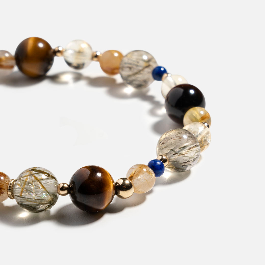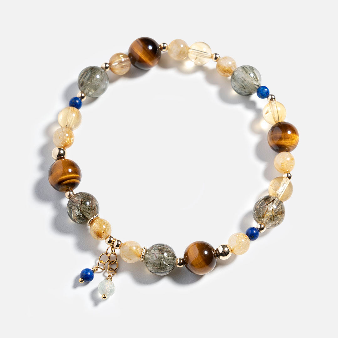 綠髮碧璽金髮晶虎眼石黃水晶14K包金手鏈