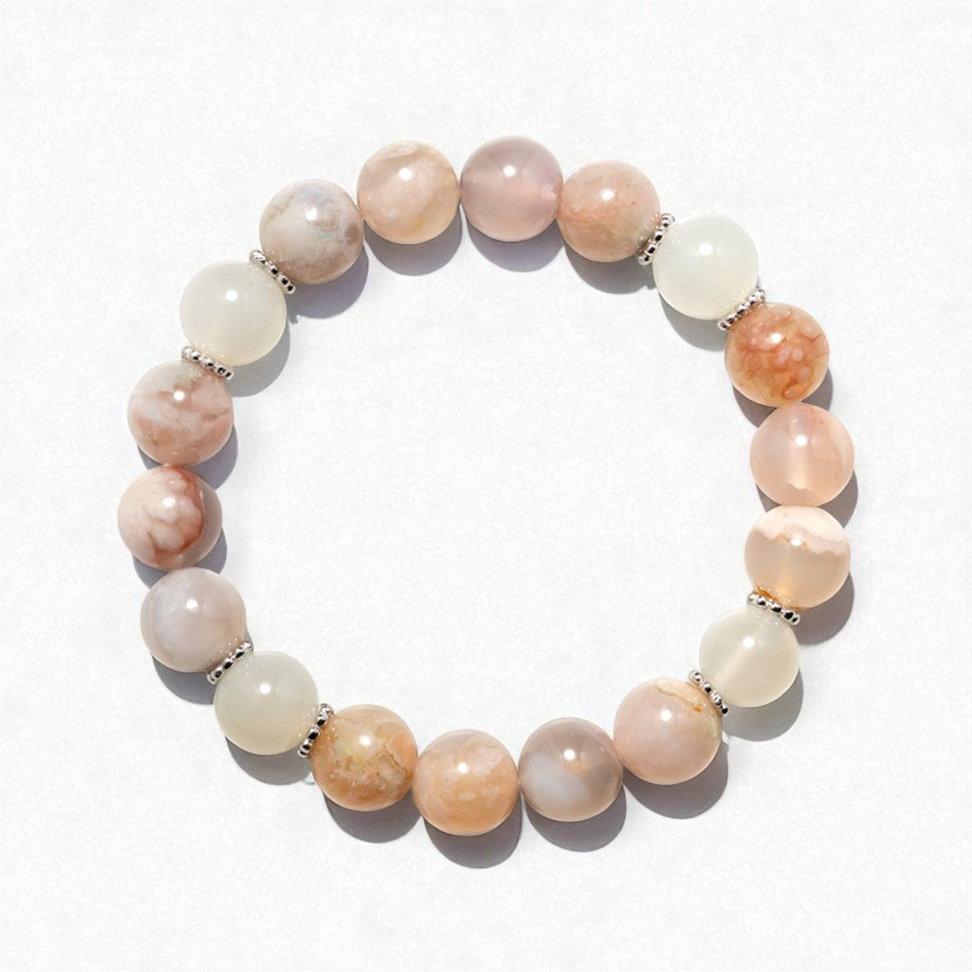櫻花瑪瑙月光石925銀手鏈 | 一圖一物