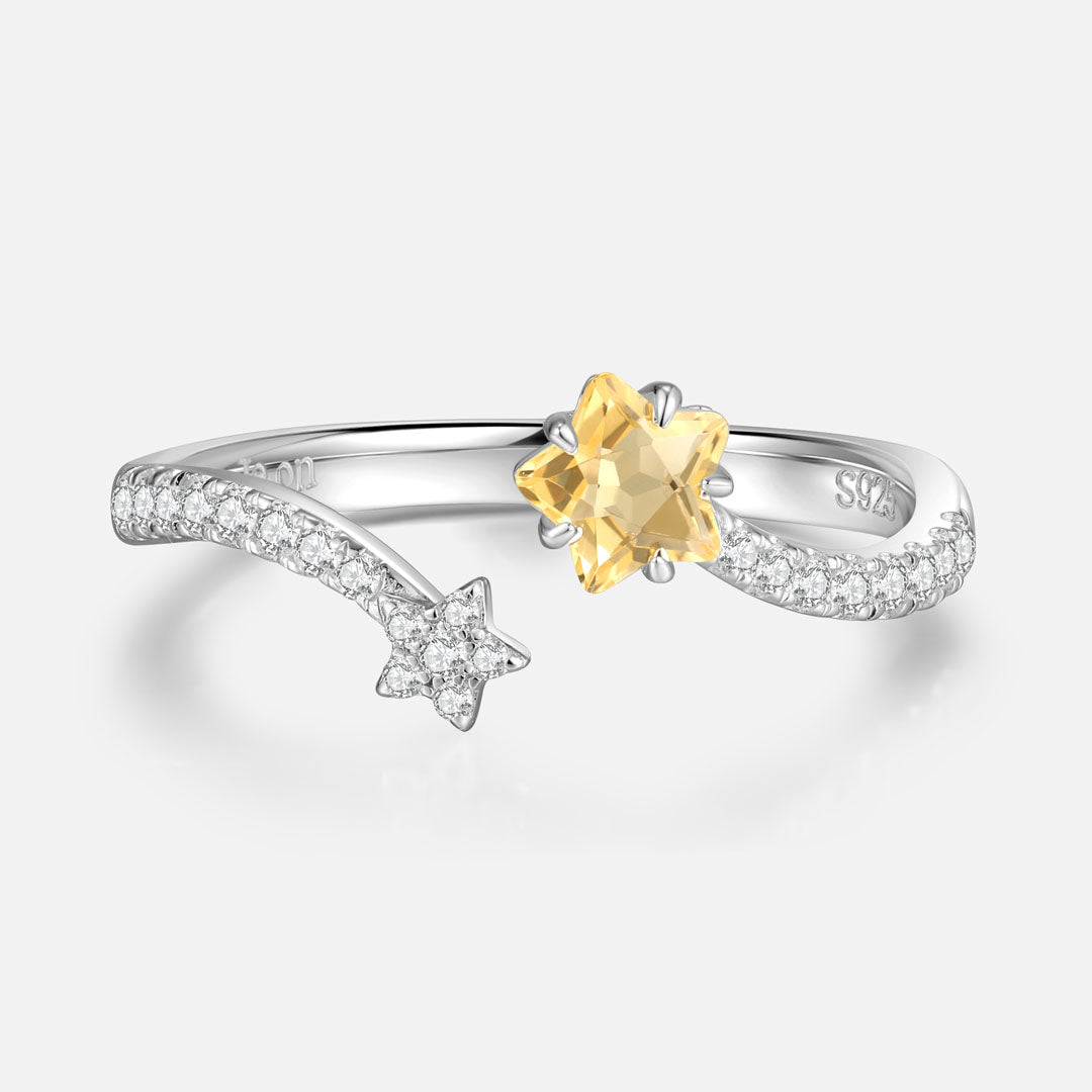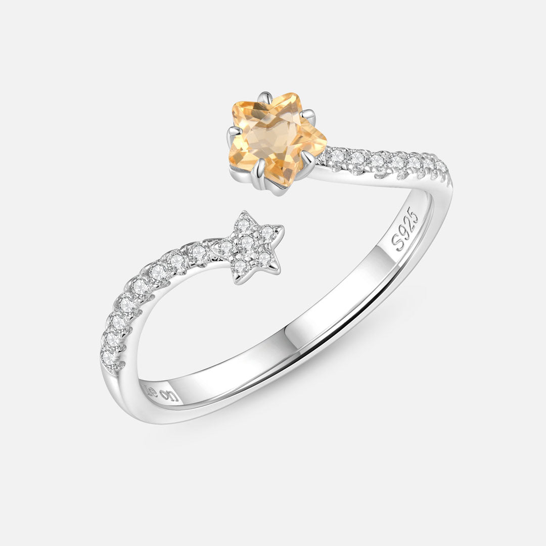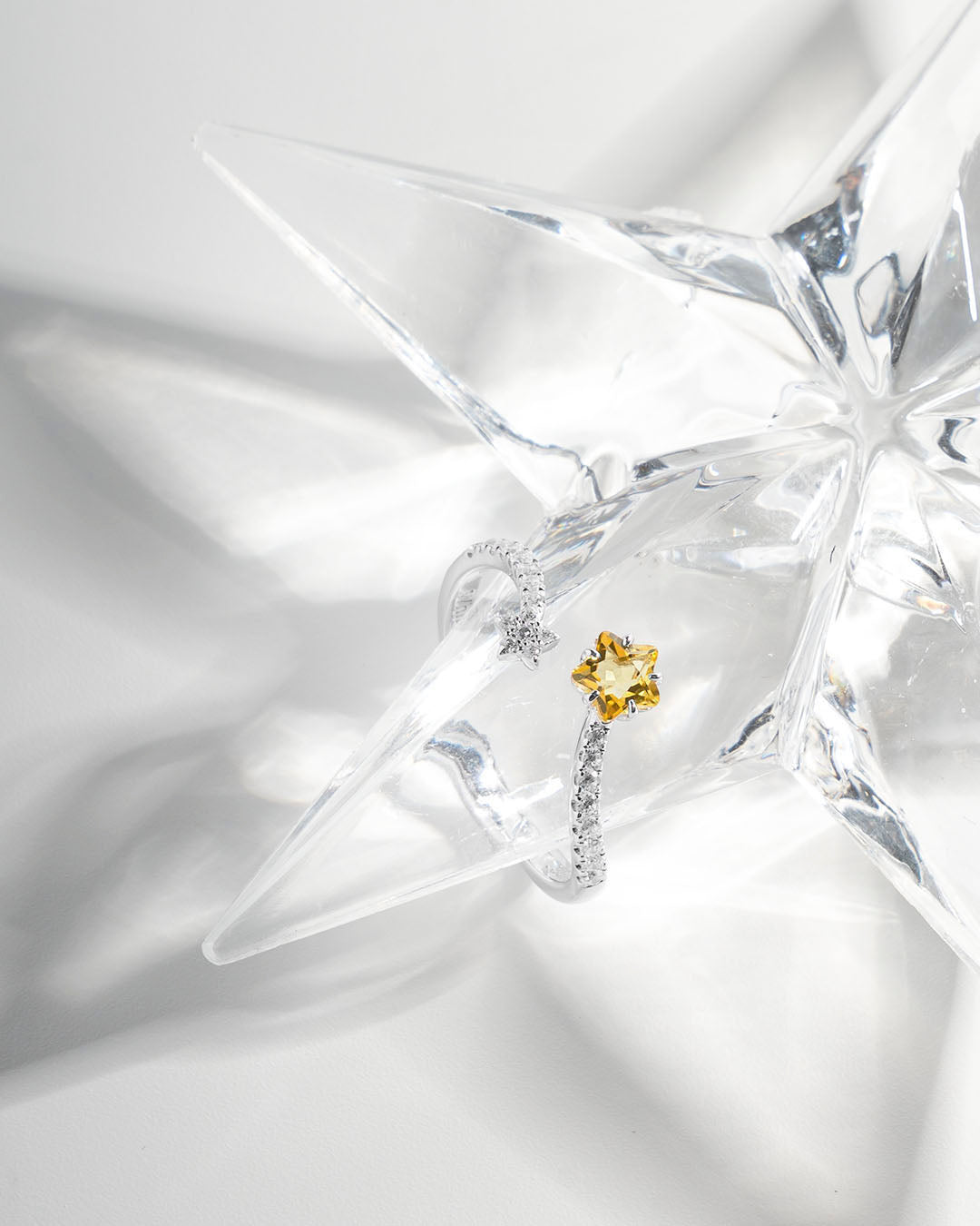 星星開口戒指以流暢線條勾勒流星劃過的瞬間,戒臂半圈鑲嵌璀璨鋯石,星光在指尖綻放,角度不同皆閃爍動人。中央特別鑲嵌精選半寶石,象徵夜空中最明亮的星辰,增添獨特色彩與能量。開口設計貼合不同手型,佩戴舒適、易於調整,日常或特別場合皆能襯托優雅氣質,讓你自信閃耀。讓「THE STAR」成為指尖的祝福,點亮屬於你的星空。