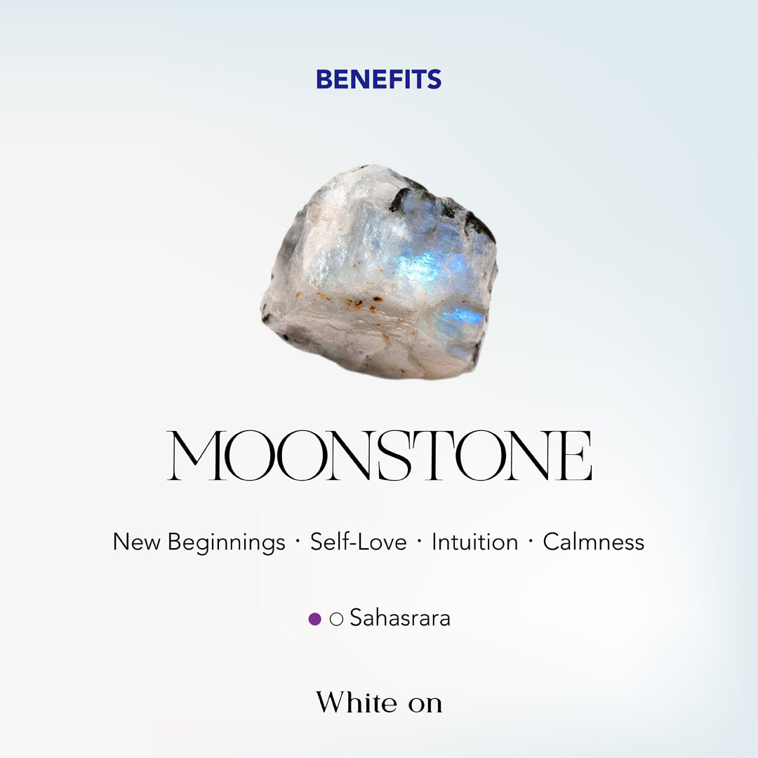 月亮石象徵著重生的意義,它是溫柔的化身,散發的光澤和滿月的光輝十分相像,能撫慰受傷的心靈、柔和性情、增添魅力,還可以化解爭吵,讓戀人們走得更遠,因此月亮石被稱為「戀人之石」。