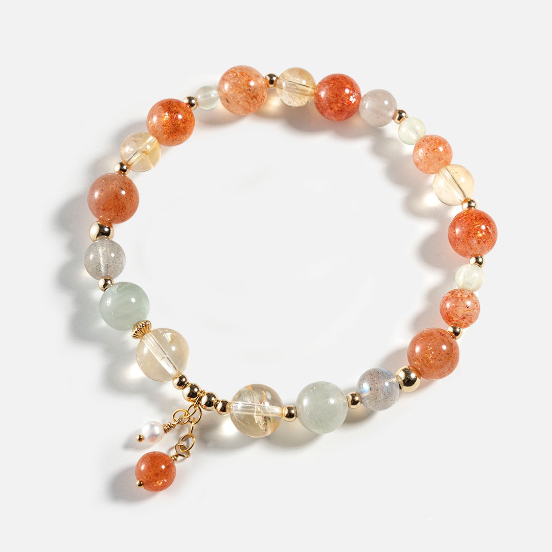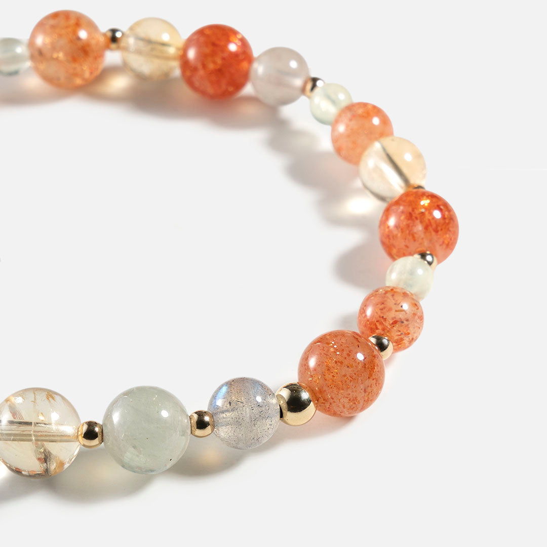 阿魯沙黃水晶拉長石14K包金水晶手鏈